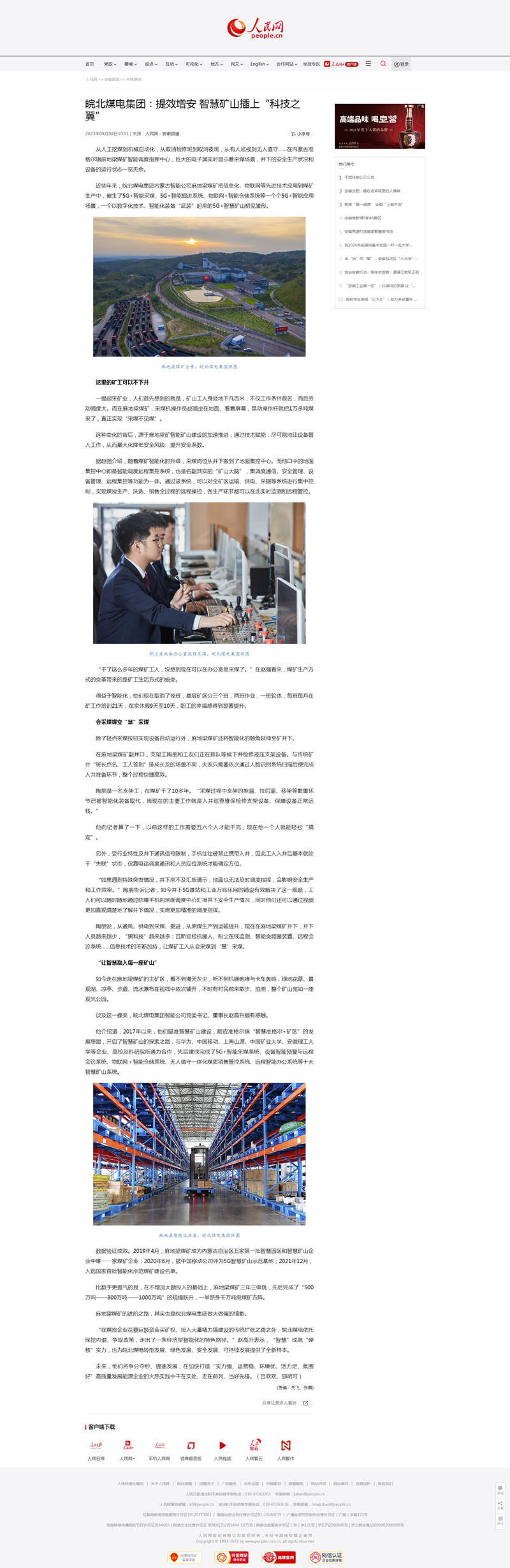 8月8日人民網(wǎng):皖北煤電集團提效增安 智慧礦山插上“科技之翼”