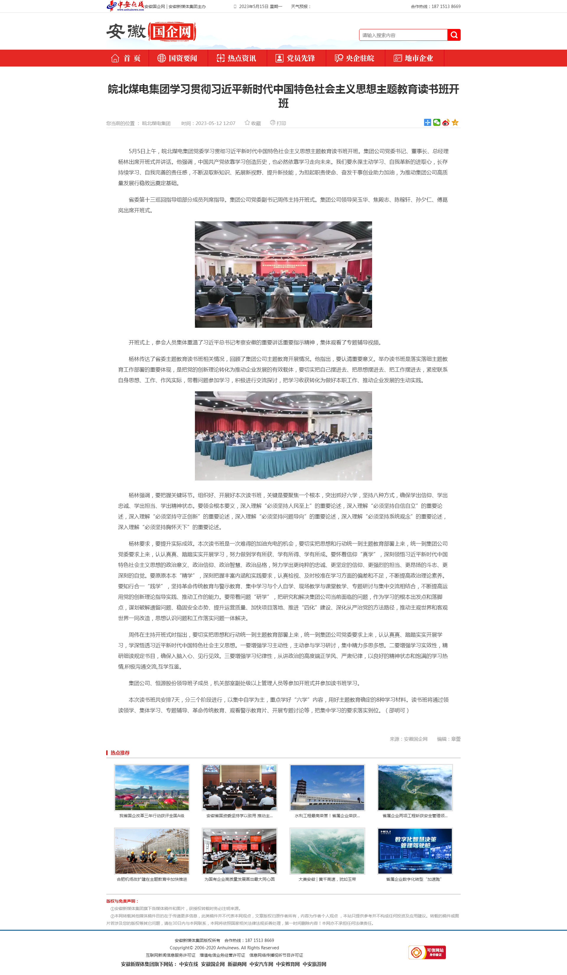 5月12日安徽國企網(wǎng):皖北煤電集團(tuán)學(xué)習(xí)貫徹習(xí)近平新時代中國特色社會主義思想主題教育讀書班開班